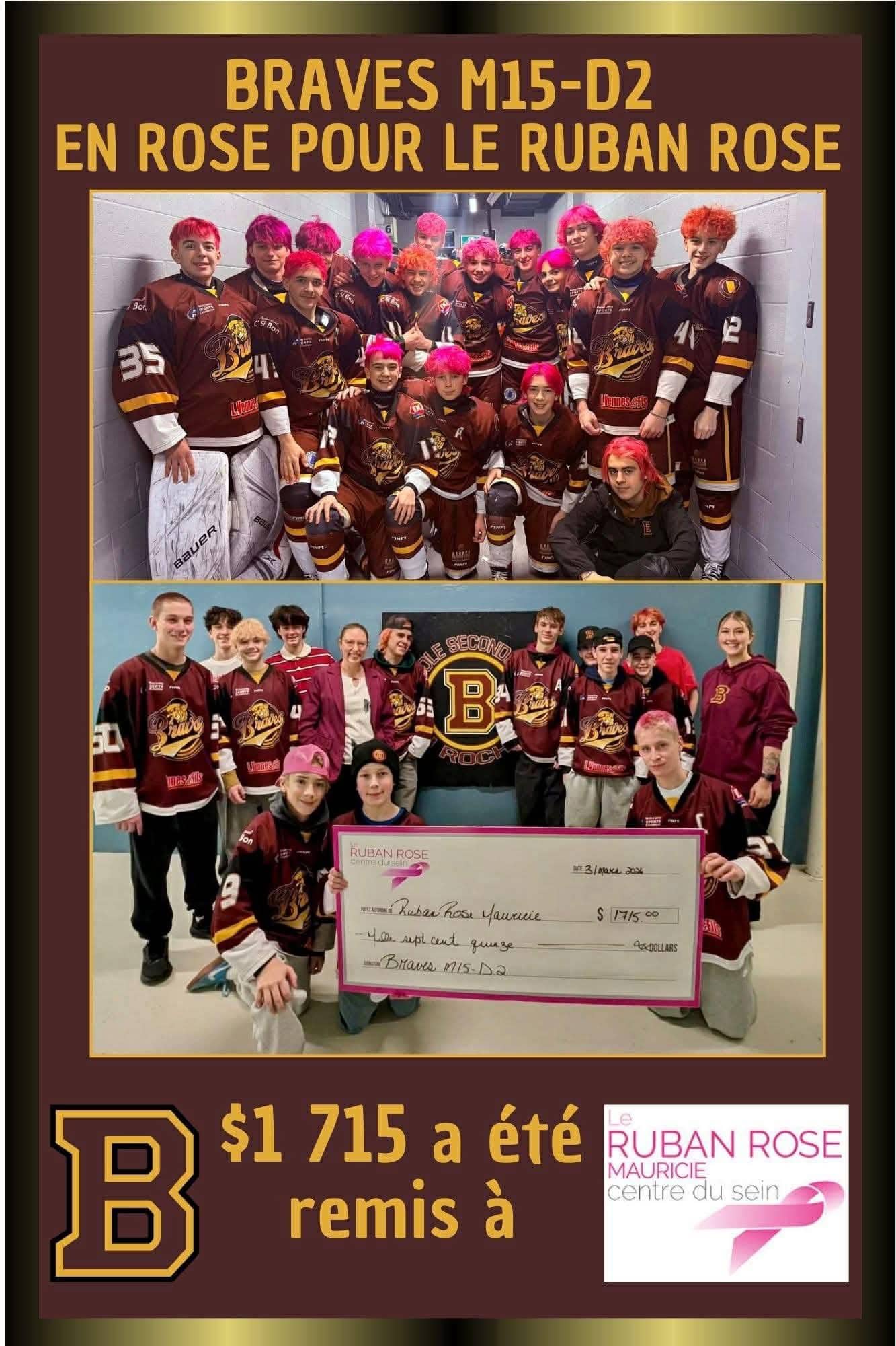 Pendant les séries éliminatoires, nos jeunes ont posé un geste fort : se teindre les cheveux en rose pour soutenir une belle cause.